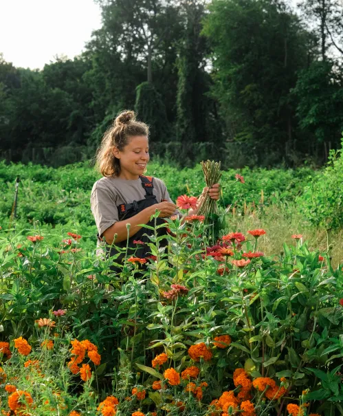 At Forts Ferry Farm, we believe true strength and resilience come from biodiversity – on the land and in the life of the farm. Our fields feature a wide and diverse crop selection within a naturalistic landscape of wetlands, wildflower meadows, and intensive tree plantings that create ecologically rich pockets across the property. This same dynamic approach extends to how we share the land's abundance. through markets and farm stands, community events, and food-forward gatherings that activate and sustain the farm as a whole.